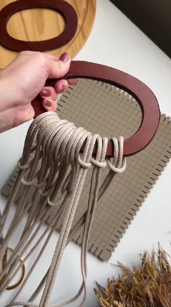 木の輪っかにマクラメロープで作るバッグ