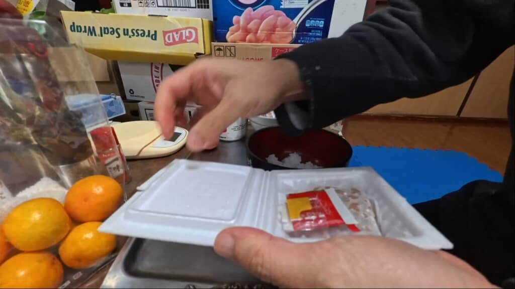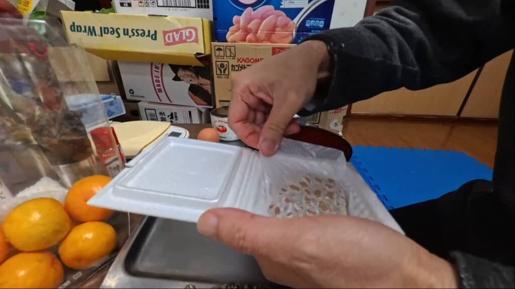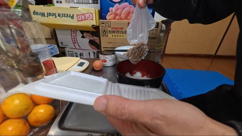 納豆のパックを開けて