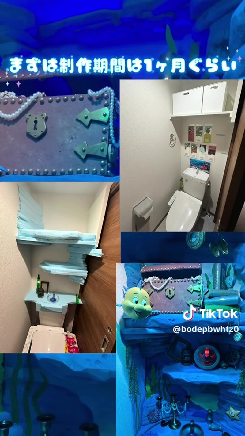 自宅のトイレを全力でリトルマーメイドの世界に変身させたら……。完成した驚きの空間がTikTokに投稿されました。思い切った改造が注目を集め、記事執筆時点で合計110万回以上再生され、8万4000件以上のいいねを集めています。