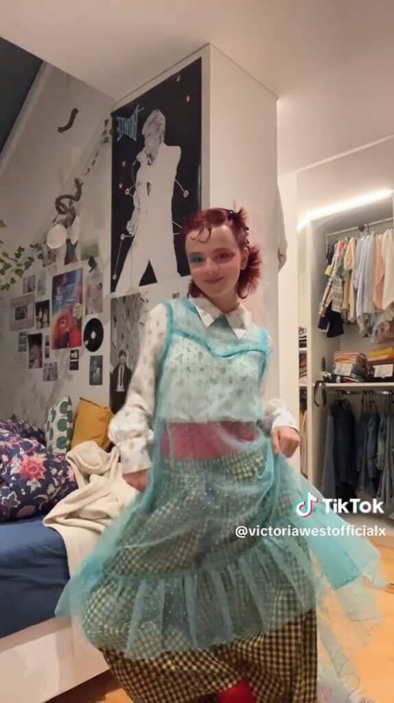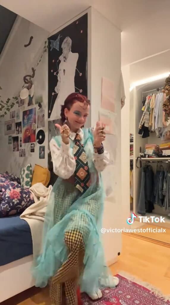 (1/4)すでに予定より遅れているものの、ファッションに妥協はしないvictoriaさん。まずは赤タイツを履きます