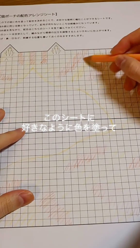 配色アレンジシートを使って、好きな柄の猫ポーチを編んでみた