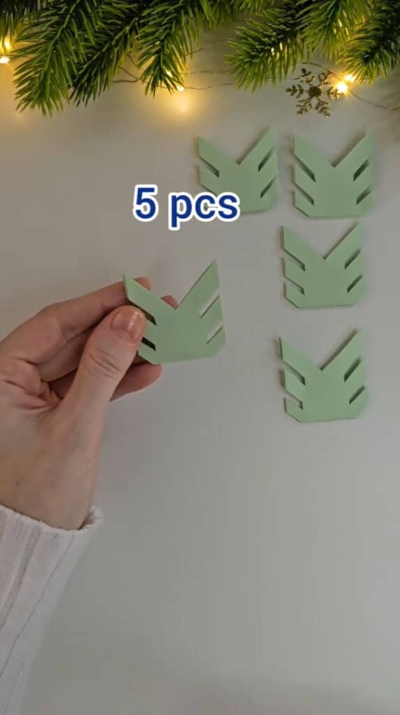 3/4)切り込みを入れて開くと木のような形に。同じ工程を繰り返して、まったく同じパーツを5つ用意するのがポイント