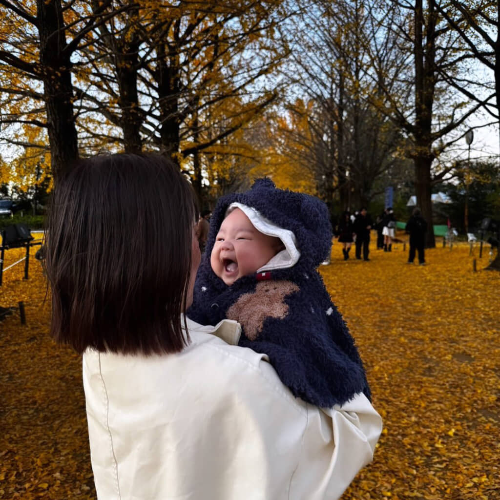 まずは、ママが抱っこしているときの赤ちゃんの表情。真っすぐその目を見つめながら、満面の笑みを浮かべています。これでもかというくらい大きく口を開け、とてもうれしそうですね。