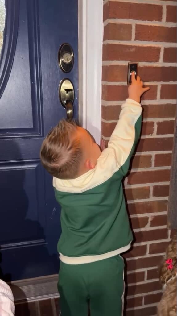 そしておばあちゃんの家のドアの前で、子どもたちは待ちきれないようにそわそわ。そして長男くんが呼び鈴を鳴らすと扉が開いて、いよいよサプライズ本番です。