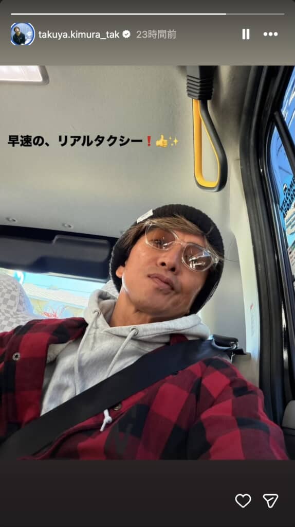 タレントの木村拓哉さんは12月4日、Instagramのストーリーズを更新。タクシーに乗ったソロショットを公開しました。8000円とみられるサングラスがステキ!
