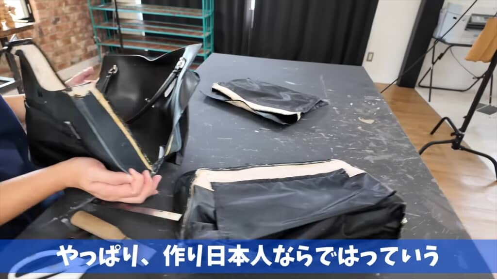 レビュー後には、リバースエンジニアリングの観点から早苗バッグを分解してみることに。芯材の使い方や軽量化の秘密、欧州の高級レザーブランドとの違いなどを見ていきます。