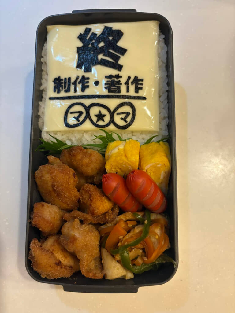 このお弁当には、「何!? ドラマ!?」「何このセンスの良いお弁当」「泣けます お疲れ様でした!」「愛情いっぱいで素晴らしいです!」「3年間お疲れさまでした」「うわーん全然関係ないのに泣けちゃう」「ママ、すごーーーい!!!!」「こんなん泣きながら食うわ」「これはすごい」と絶賛の声が寄せられました。