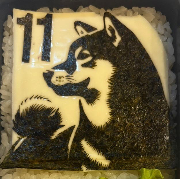 そしてご飯の方に目をやると、「終 制作・著作 ママ」という文字が。どうやら、NHKのテレビ番組で放送終了時に流れるクレジットをパロディしたもののようです。のりを切って文字を作り、スライスチーズの上に表記を再現。ものすごい手の込みようだ……。