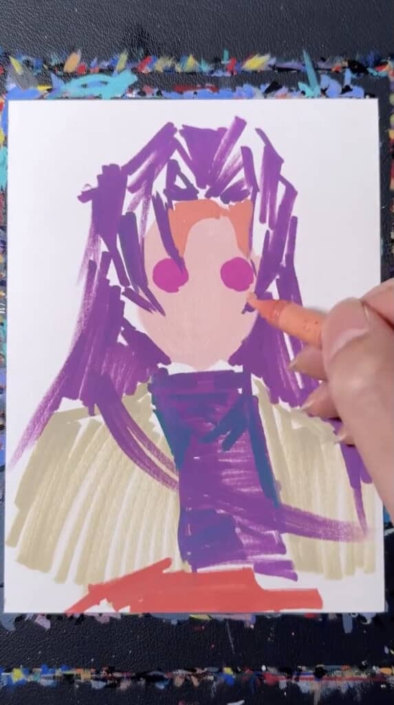 いきなりペンで顔の色を塗っていきます