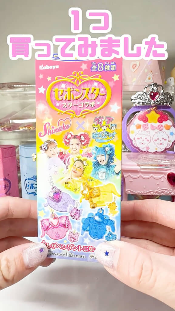 投稿したのは、YouTubeチャンネル「ぽしのチャンネル【セボンスターYouTuber】」でカプセルトイやカバヤ食品の玩具菓子「セボンスター」の開封動画を公開しているぽしのさん。今回は、原宿のスターたちとのコラボ商品「セボンスター スターコラボ」を開封していきます。
