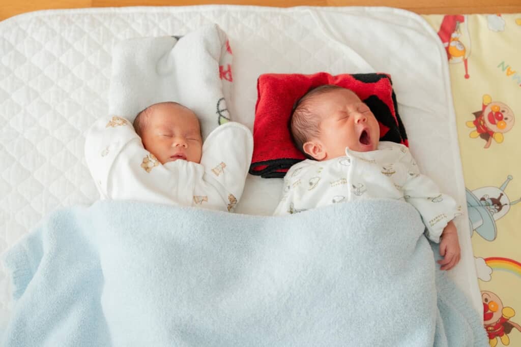 3/5)思わずこちらもつられてしまいそうな、赤ちゃんの大きなあくびの瞬間。双子ならではの愛らしい仕草に、見ている人も自然と笑顔に