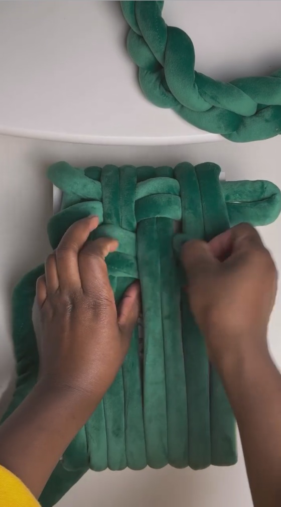 今回多くの注目を集めたのは、太くてふっくらした質感の毛糸「チャンキーヤーン」を本に巻きつけ、器具を使わずに指で編むだけで“おしゃれなおでかけアイテム”が完成する動画です。