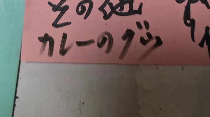 しかしその下には「その他」の文字が! さらに続いて記されてあったのは「カレーのグゥ」! グゥとは……? 一瞬ルーなのか具なのか迷うところですが、これはルー。なぜかいろいろ混じってしまったようです。