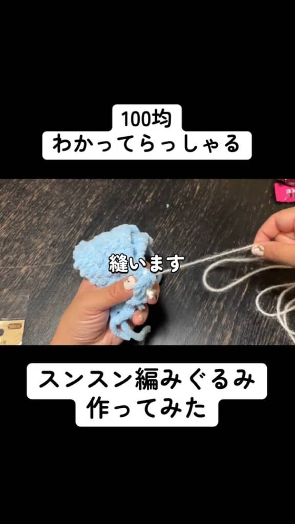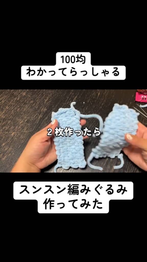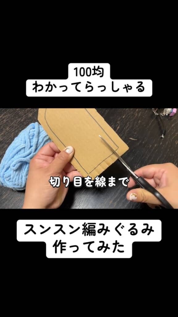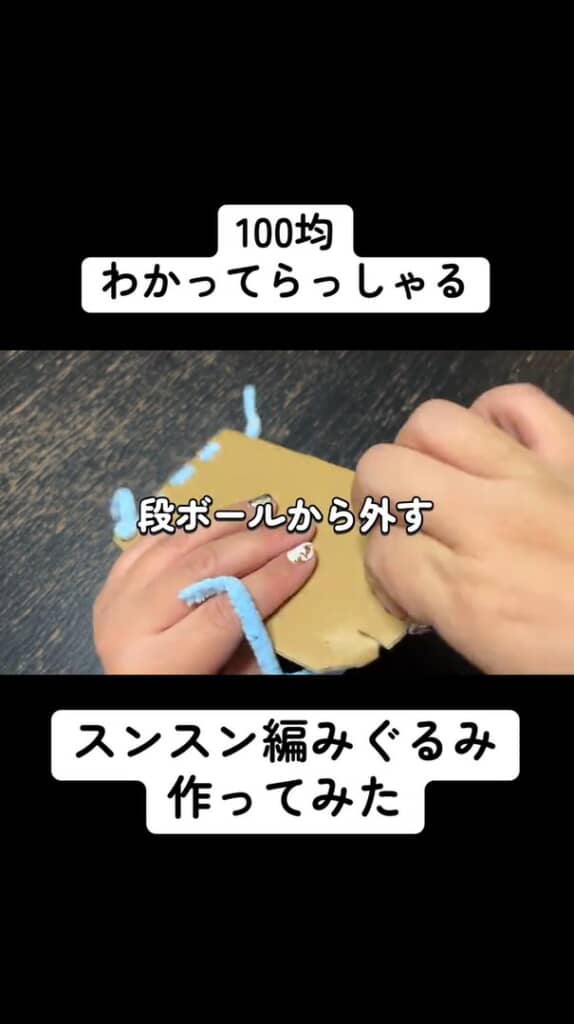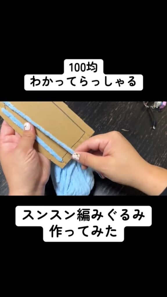 水色の毛糸とダンボールで……