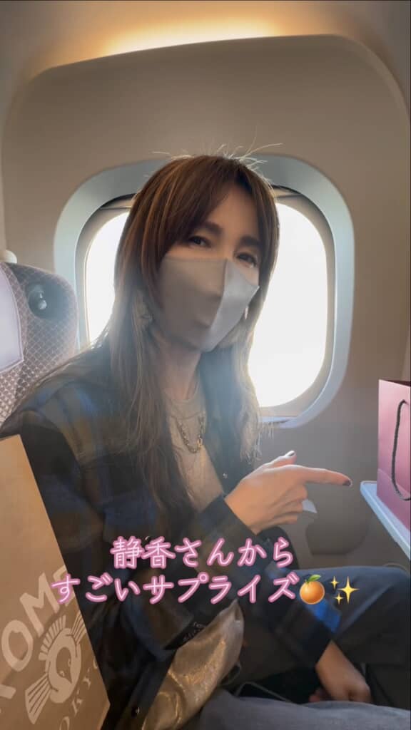 スタッフが19日、「工藤静香クリスマスディナーショー2025 帝国ホテル大阪にお越しいただきありがとうございました 帰りの新幹線の中で静香さんからすごいサプライズが!!」と添えて投稿したのは、大阪府から東京都へと帰る新幹線の車内での一幕。