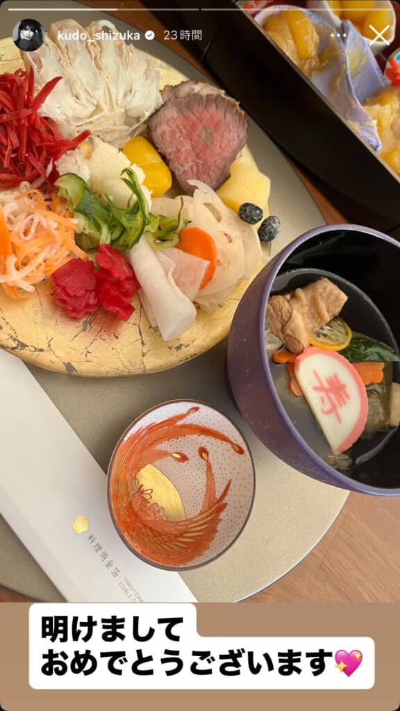 工藤さんは「父は青森、母は北海道出身なので幼い頃からお節は31日の大晦日からいただいています 今年も本当にありがとうございました」とコメント。「どうぞ、穏やかな年末年始をお過ごしください」とファンにメッセージを送っていました。