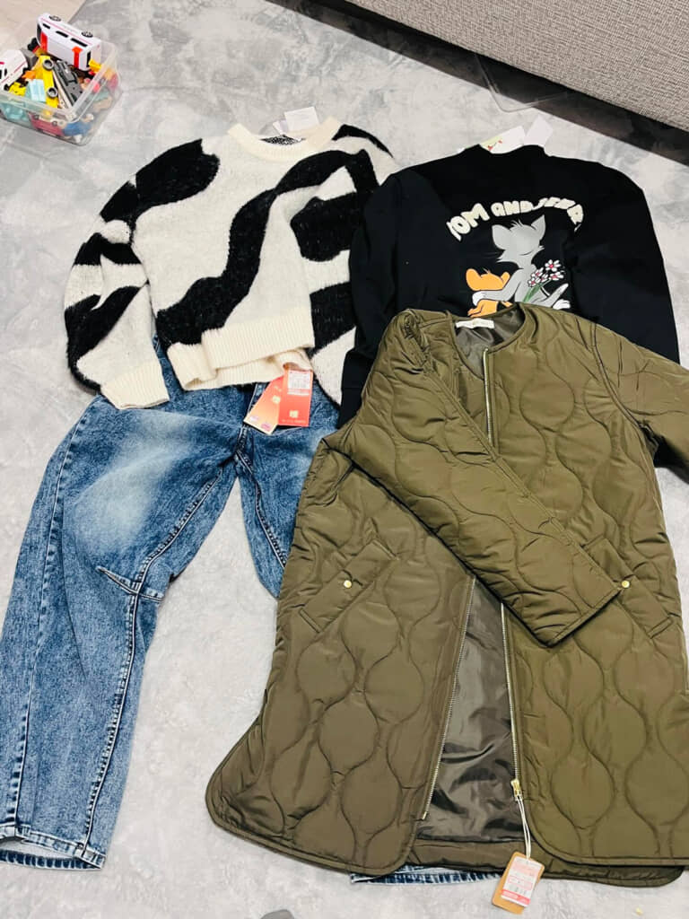 おこめさんは、中が暖かい素材のデニムや「トムとジェリー」のトレーナー、白黒模様でふわふわなニットや軽やかなオーバーサイズコートの4点を購入。そしてその総額はなんと、7000円! 全部でその倍はしそうな品々ですが、さすが安さに定評のあるしまむら。そしてお買い物上手だこと……!