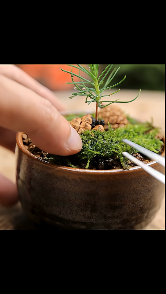 黒松の松ぼっくり湯呑み盆栽