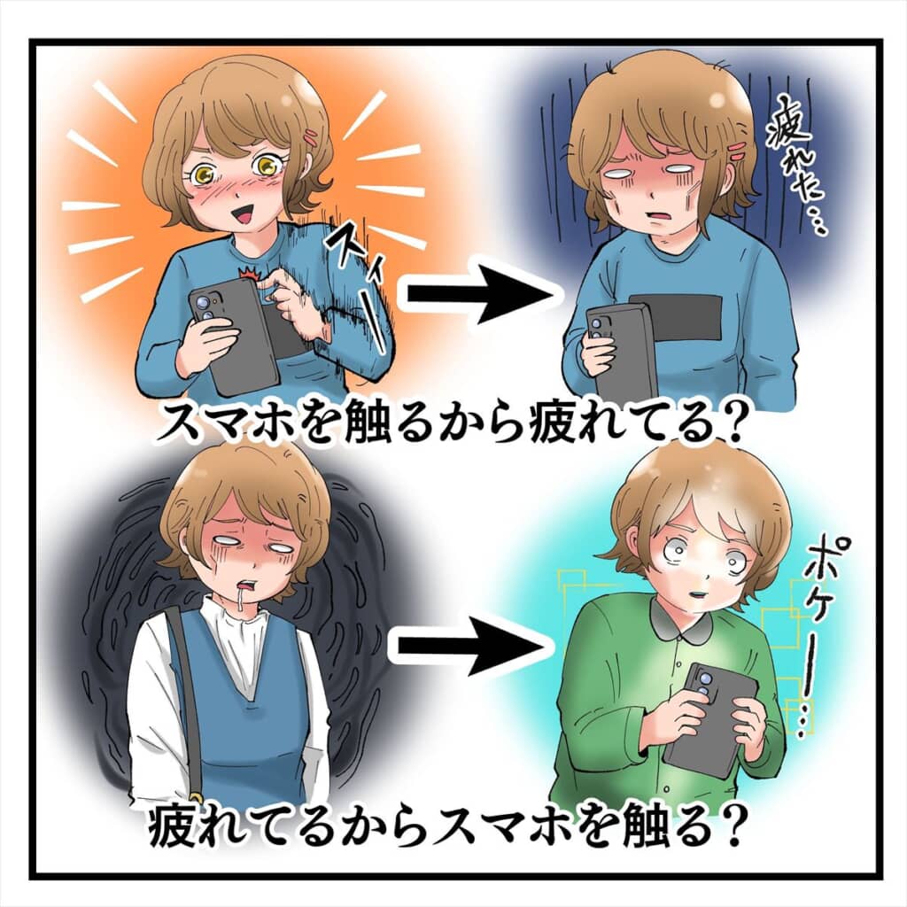 それは「スマホを触っているから」疲れているのではなく、「疲れているから」何も考えずにスマホを開いてしまっている、そんな順番であるとも考えられないでしょうか。