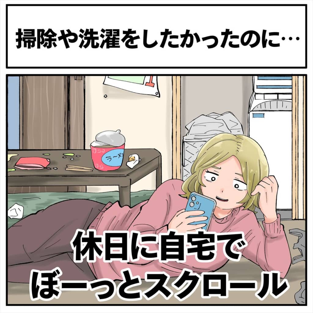 その3:「掃除や洗濯をするはずだったのに」休日に自宅でぼーっとスクロール