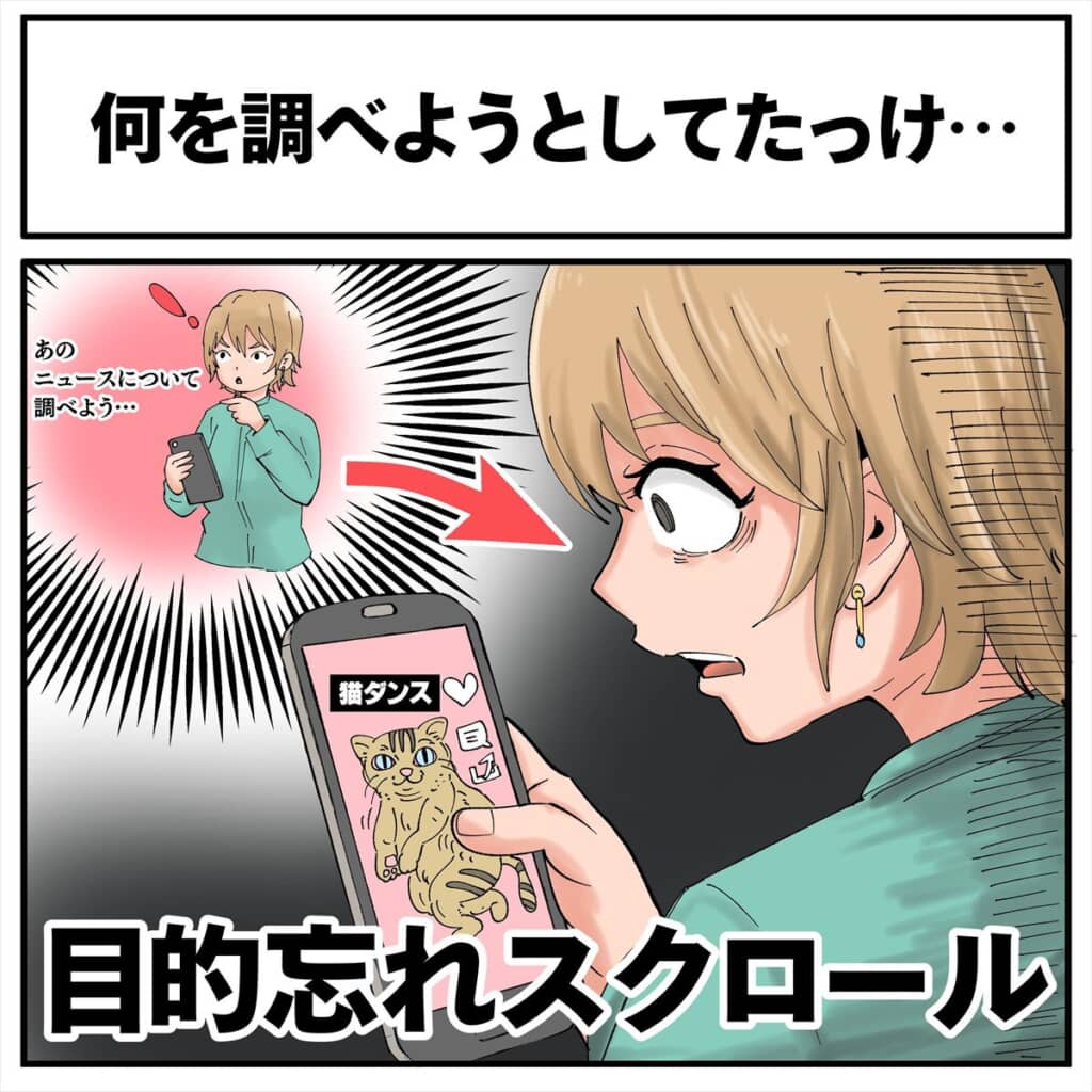 シンプルですが、これもよくある! 調べたいことが出てきたのでスマホを開いて、流れるようにいつも見ているSNSを開き、ぼーっとスクロールしているうちに「何を調べようとしてたんだっけ?」と目的を忘れてしまっている状況はまさに「ゾンビスクロール」状態といえます。