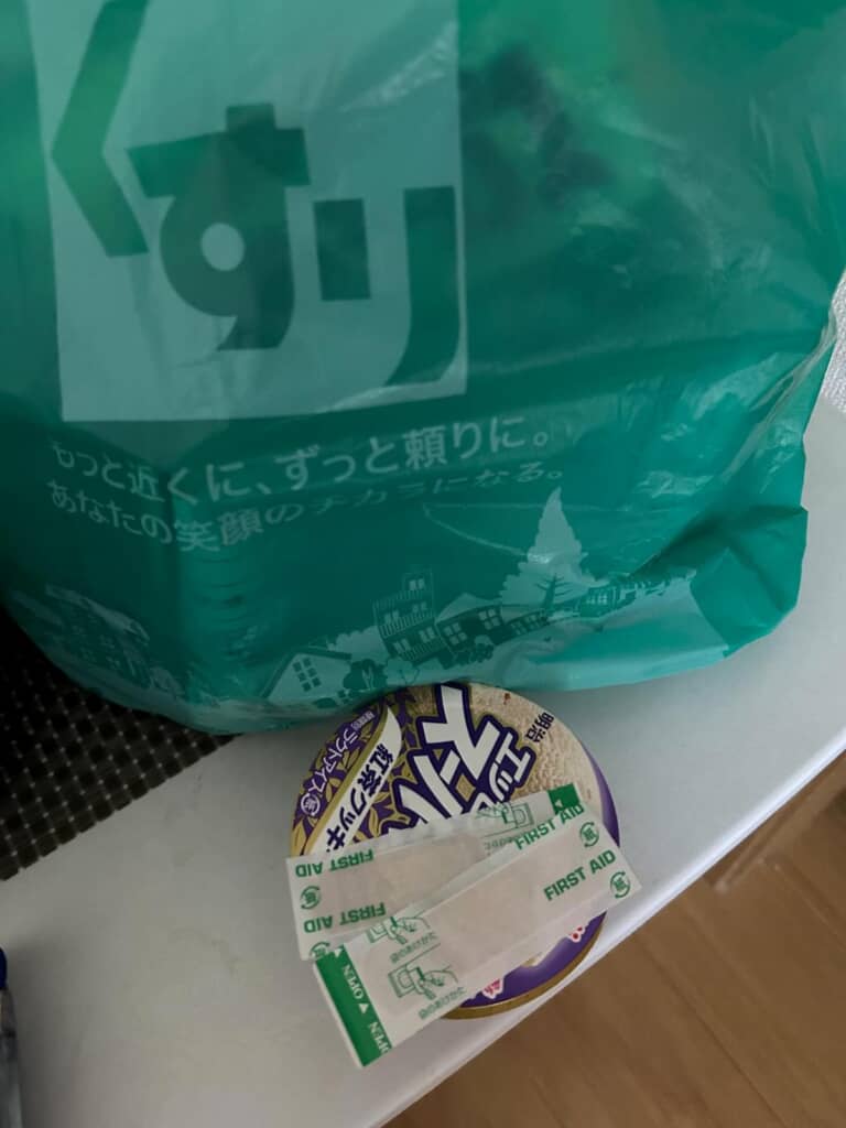 店員に渡されたのはものをよく見ると、スプーンではなく絆創膏!? 確かにぱっと見ではスプーンと間違えてしまいそうな形状ですが、絆創膏だとスーパーカップは食べられない……!