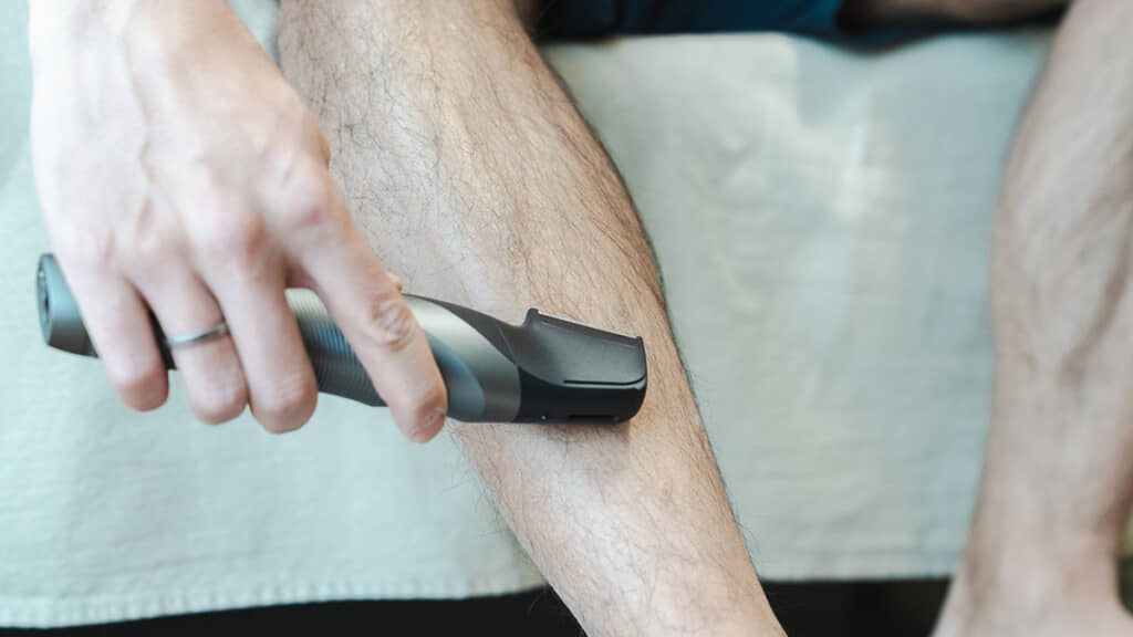 自分のすねには、アタッチメントなしの直刃が一番いいと感じた。日当たりのいい家に住み始めたみたいな感じで、明るい未来を描くことができた。5分もかからずに右足のすね毛はほぼ消えて、スッキリとした見た目になった。