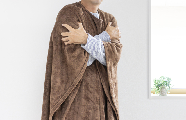 ニトリの着る毛布を羽織って出かけたら……「それってカルバン・クライン?」 まさかの着こなしに「これはもう着てる方の個性」