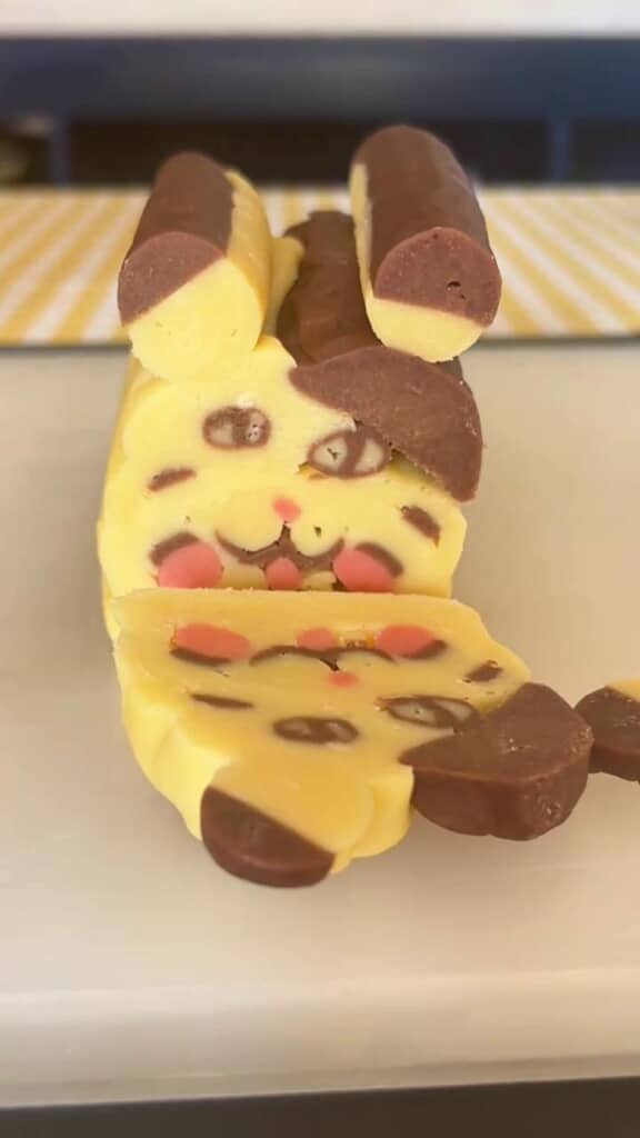 カットした瞬間に思わず「ん~!」と何とも言えない声を上げてしまう、おずんさん。特徴的な大きな耳や、目や鼻の部分からハム太郎に見えなくも……ない……? どんどんと切り進めていきますが、あまり元気がない様子。い、いや、まだ焼くまでどうなるか分かりませんよね!