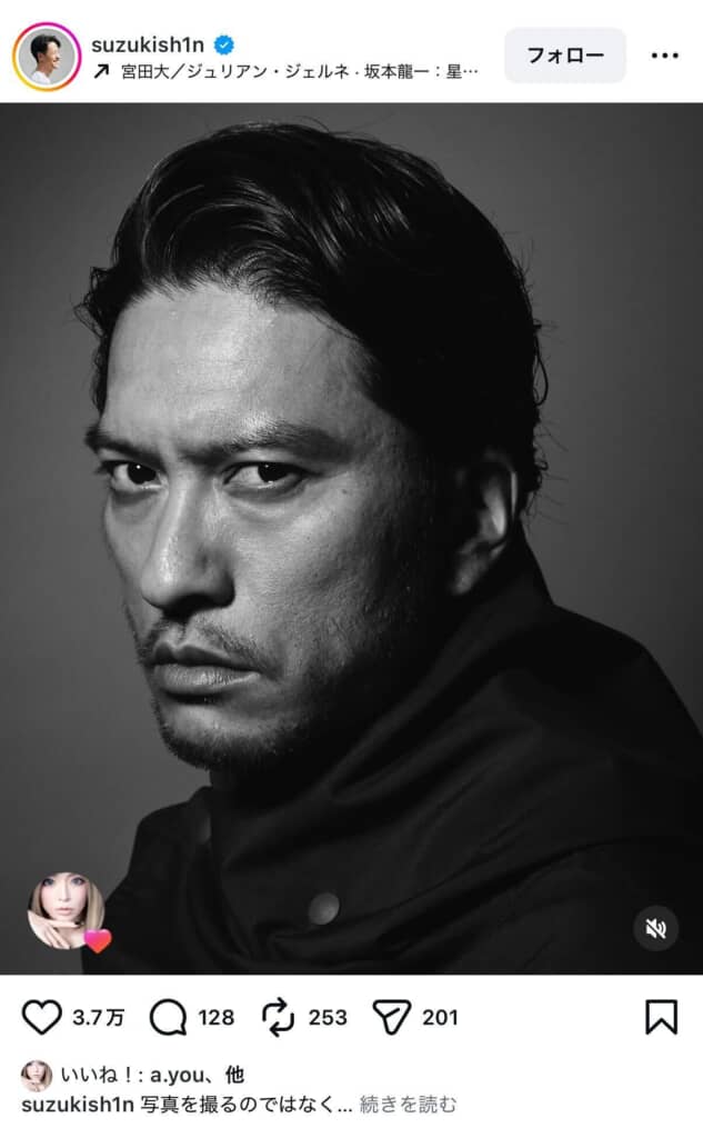 数々の著名人の撮影を手掛けるフォトグラファーの鈴木心さんが、2月27日までにInstagramを更新。SNSに投稿した元TOKIOの長瀬智也さんの写真に、歌手の浜崎あゆみさんが反応し、ファンの間で話題となっています。