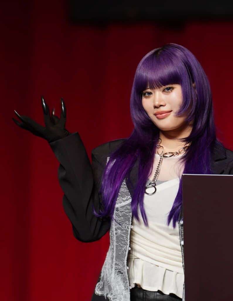 黒柳徹子さんのモノマネをするMAHINA(編集部撮影)