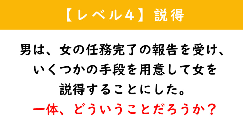 - ヒント2:任務報告した女と、説得をした女は同一人物? → NO