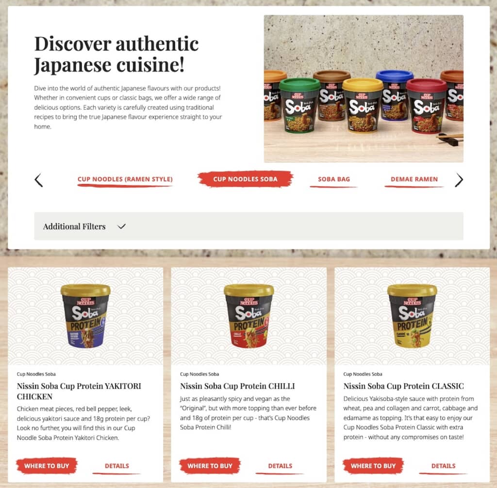 同シリーズでは、「日清カップそば プロテイン 焼き鳥チキン(Nissin Soba Cup Protein YAKITORI CHICKEN)」「日清カップそば すき焼きビーフ(Nissin Soba Cup SUKIYAKI BEEF)」「日清カップそば 日本風カレー(Nissin Soba Cup JAPANESE CURRY)」など、16種類がラインアップされています。