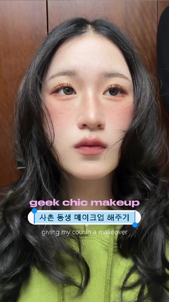今回紹介するのは、真面目そうなメガネ姿の女性が、メイクによって洗練された雰囲気へと変わっていく動画です。メガネをかけた素朴な雰囲気の女性は、投稿者さんの従妹とのこと。女性はグリーンのパーカーを着ており、ナチュラルなすっぴん状態です。