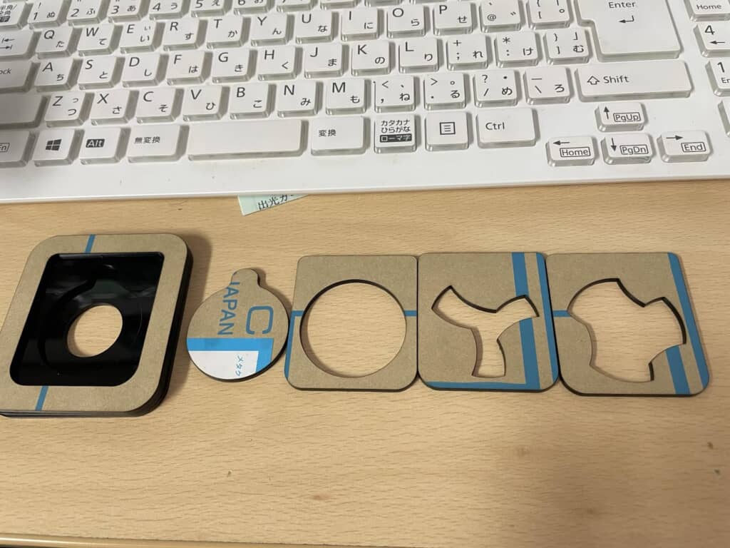 かなり本格的に段取りしているようで、まずは型を作っているみたい。プラスチック板をレーザーでカットしていき、謎の形の部品を大量に作りました。