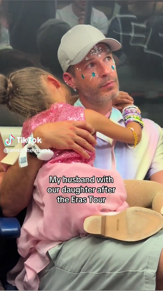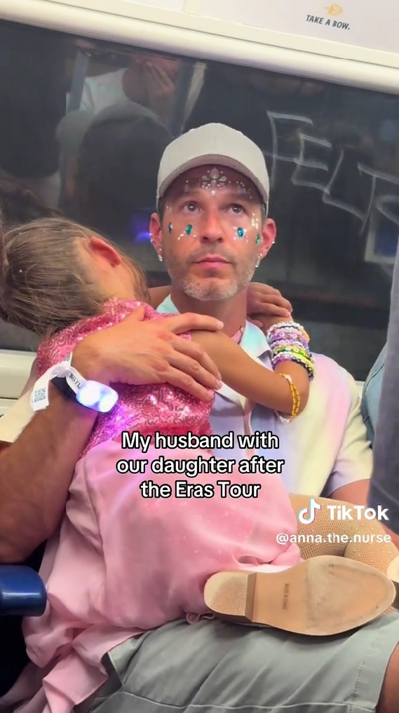話題となっているのは、テイラー・スウィフトの世界的ツアー「The Eras Tour」を訪れた家族が撮影した帰路のワンシーン。娘さんはピンクのキラキラと輝く衣装に身を包み、腕にはカラフルなブレスレットがいくつも重ね付けされています。