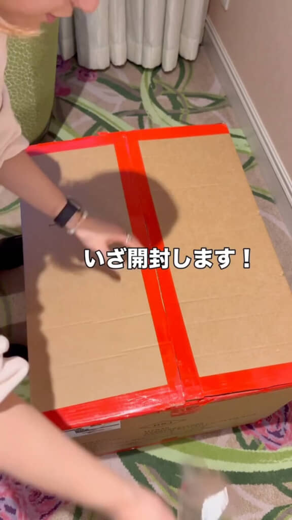投稿したのは、Instagramユーザーのわにこ(@wanico_disney_goods)さん。ディズニーが大好きな2児のママで、SNSではディズニーグッズの情報を発信しています。今回投稿したのは、ディズニーストアで大きな買い物をした様子を収めた動画。冒頭では、片手で持つのも大変そうなほどの巨大な段ボール箱を抱えたわにこさんが登場します。