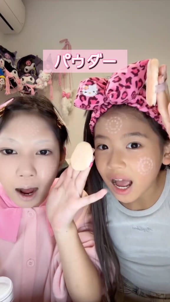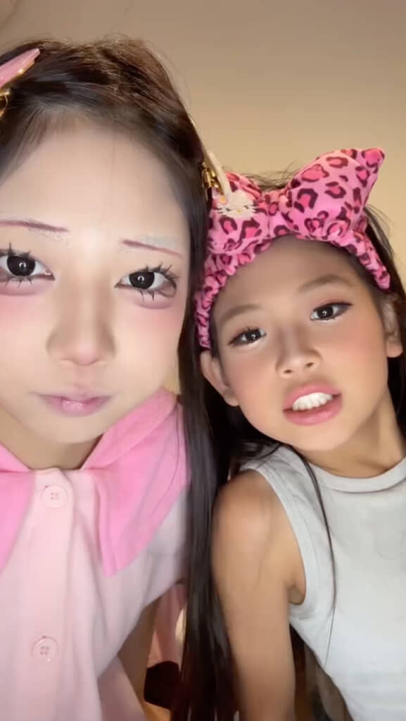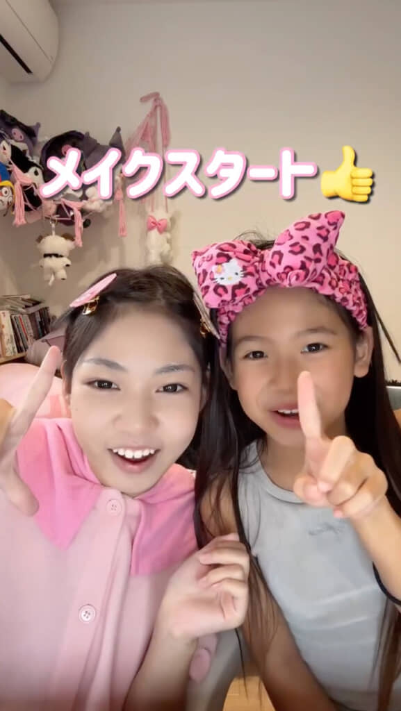 今回注目を集めたのは、地雷系が好きな長女とギャル系が好きな小学生の次女が一緒にメイクをする動画です。メイク前から2人の雰囲気は対照的で、ヘアクリップやヘアバンドにもそれぞれの好みが表れています。それでは、さっそくメイクスタート!