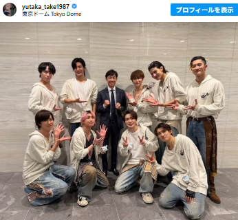 武さんは「昨年末、Snow Manの『Snow Man Dome Tour 2025-2026 ON』を観に行ってきました」と報告。「迫力のあるパフォーマンスで、会場の一体感もすごかったです」とライブの感想をつづりました。さらに「終演後に皆さんと記念写真を撮っていただきました」とし、メンバーとの集合ショットも公開しています。