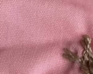 今回、人生初の刺しゅうをしてみたというヒロコさん。ピンクの生地に茶色の刺しゅう糸でカブトムシを刺したそうですが、完成したのはなんとも素朴な雰囲気の“カブトムシ”でした。よく見ると、ツノが2本あったり、全体がぷっくりと丸い形になっていたりすることから、カブトムシ以外の生き物にも見えてきます。
