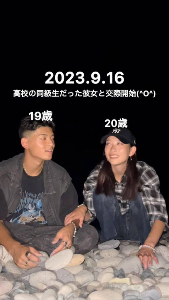 投稿したのは、TikTokユーザーの「時」(@lch.com666)さん。彼女との思い出を記録するように、日々の出来事や2人の写真を投稿しています。今回公開された動画では、2023年9月16日から始まった同級生2人の交際の記録を振り返っています。