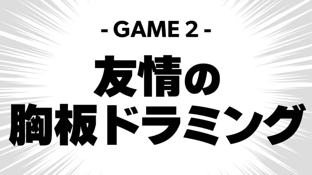 あまりにも己の筋肉を過信したルール設定ですが、マッチョたちは「やったりますよ!」と本気です。表情とシチュエーションの差がすごいな。