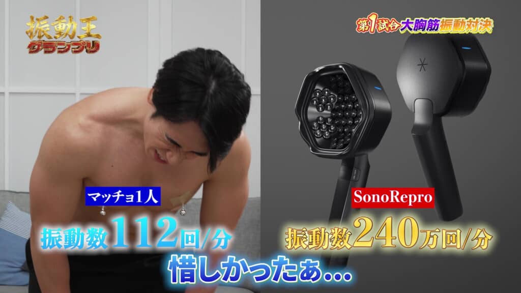 「新感覚」「マッサージみたいに叩かないから痛くない」「よく寝れそう」──など、マッチョたちからもSonoReproを絶賛する声が。筋肉のバルクアップとは根本的に別物である、ということをようやく理解してくれたみたいです。