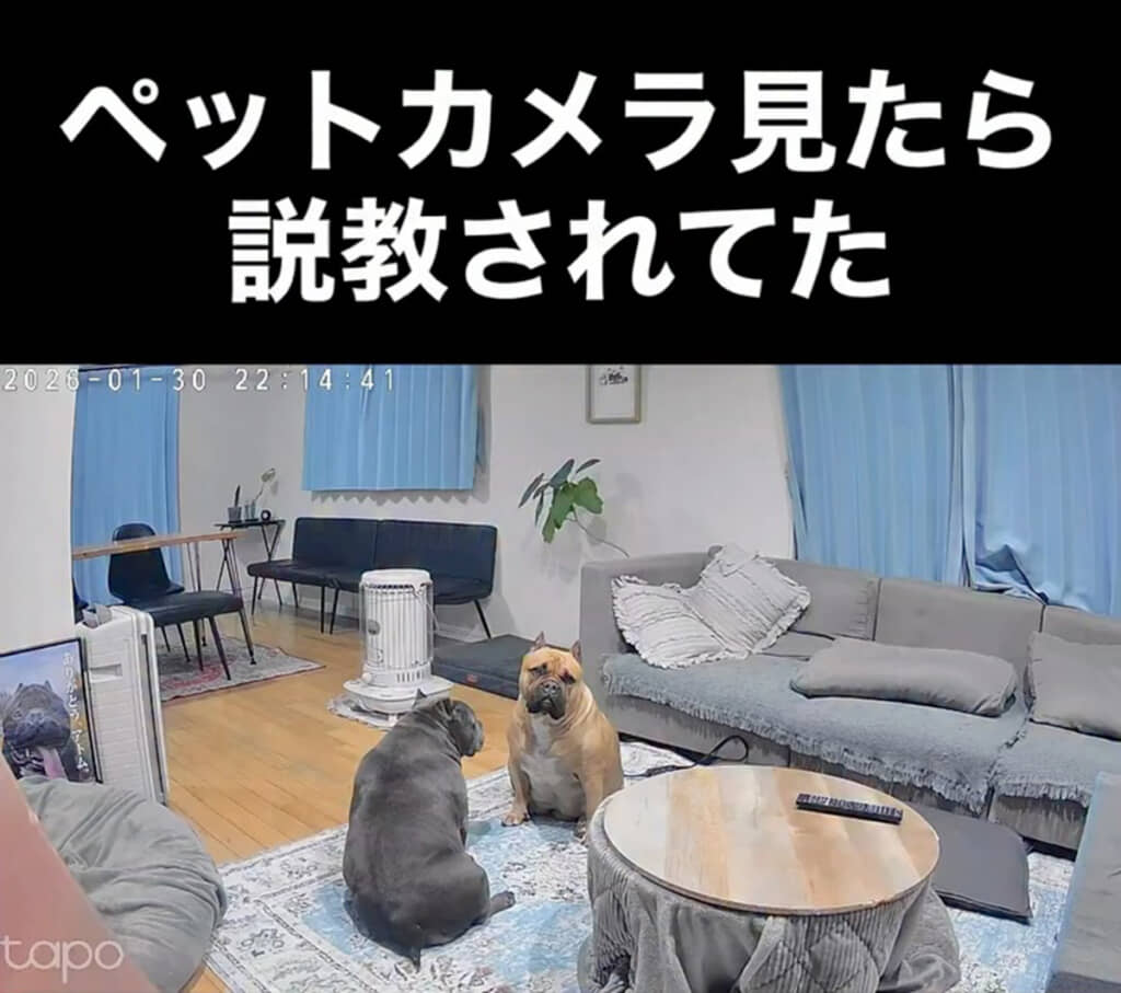 外出先でペットカメラを確認した飼い主さん。思わず笑ってしまったという出来事がInstagramで話題になっています。投稿された動画は記事執筆時点で218万再生を超え、1万5000件以上もの”いいね”を獲得しています。