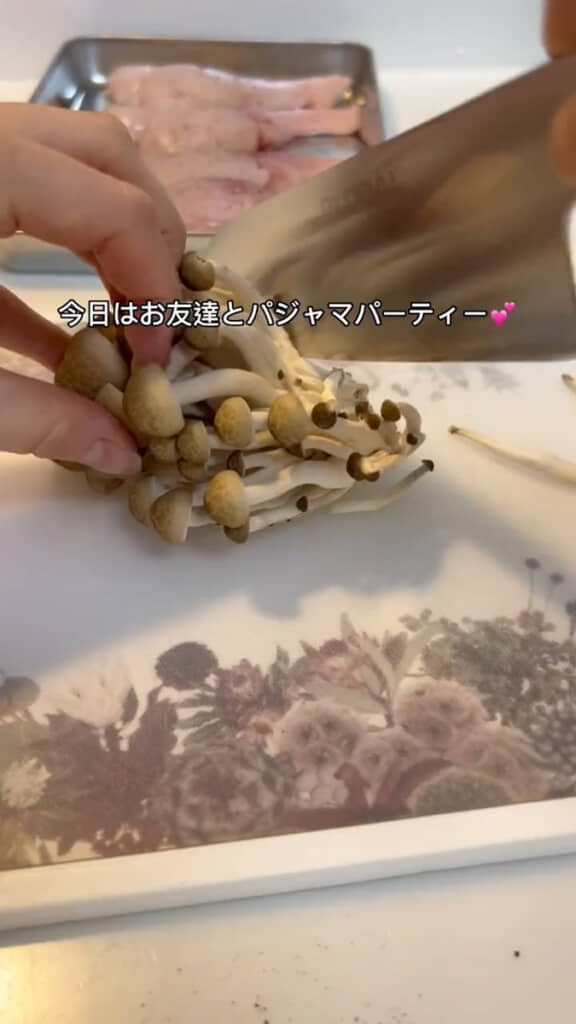 今回はいつものスイーツ動画とは少し違い、友人を自宅に招いてパジャマパーティーを開いた日の料理を作る様子を公開しました。