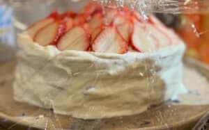 ケーキを冷蔵庫で保管しようとすると、かぶせたラップで崩れてしまったり、ほかのものに触れてえぐれてしまったりしますよね。ピナさんは、そういうアクシデントを防ぐための方法を公開しました。
