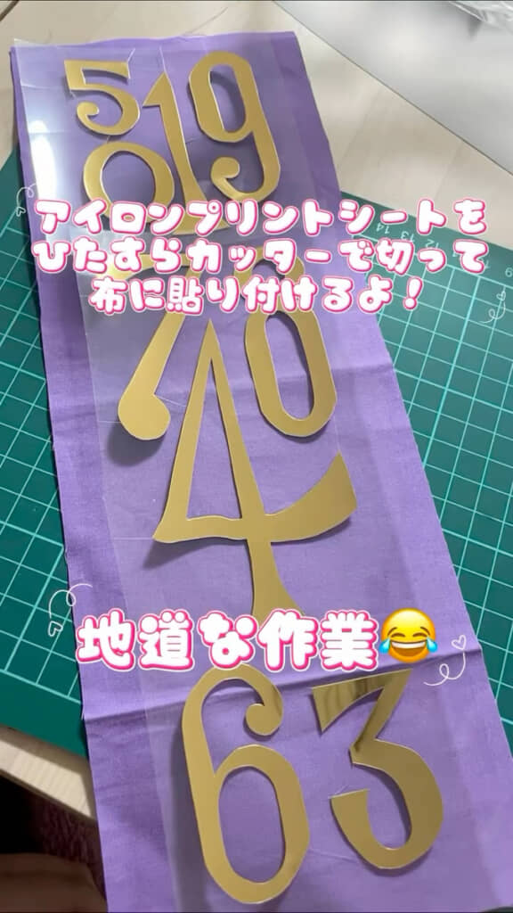建物壁面の数字部分は、アイロンプリントシートをカッターで切り抜いて再現。さらに、特徴的な歯車パーツはフェルトを切り抜いて作るなど、細かな部分にもこだわっています。