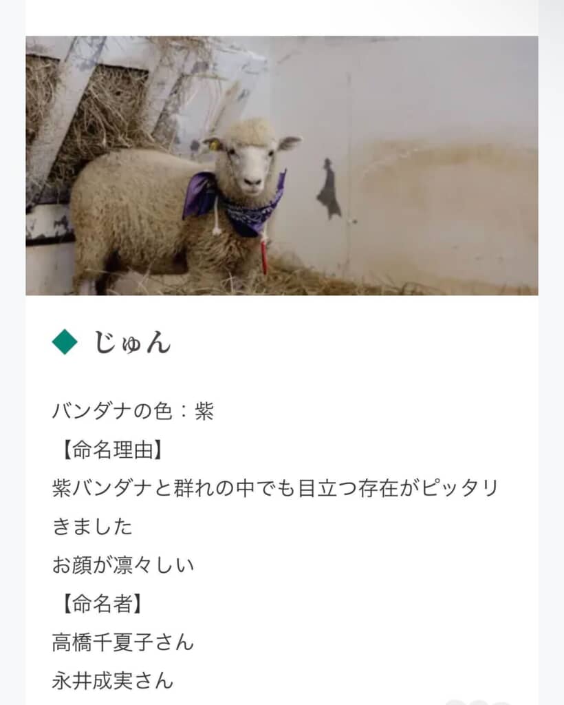 また、羊ヶ丘展望台には「じゅん」という名前の羊もおり、嵐のメンバーである松本潤さんを連想する名前として、「すごw」とひそかに注目を集めています。なお、羊のじゅんは松本さんのメンバーカラーである紫のバンダナを偶然にも身につけています。