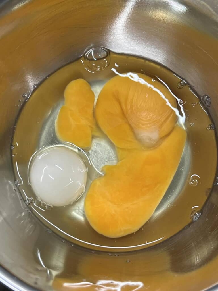 卵を割ってみたら、中から“まさかのもの”が出てきた”という投稿が「なんだなんだなんだこれはッ!」「白玉みたいにきれい」などとThreadsで話題です。この投稿は記事執筆時点で415万回以上表示され、約1万2000件の“いいね”を獲得しています。いったいこれは何!?