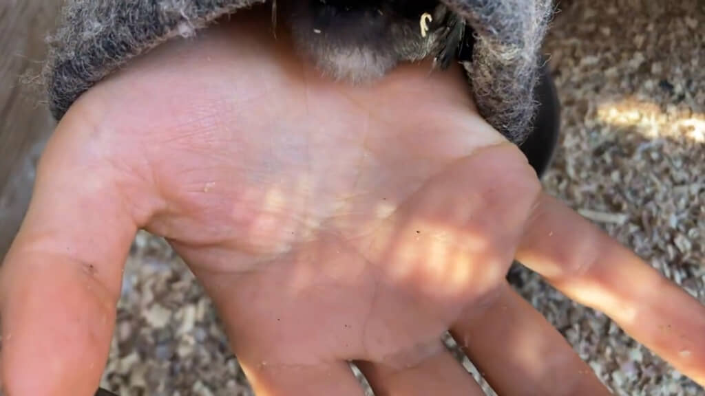 投稿者は、山深い森に建てた小屋で暮らしており、近隣に住む友人やあひるとの暮らしをユーモラスな漫画として描いているXユーザー「友達」(@human_tomodachi)さん。ヒヨコに餌やりをしていたときに起きた“まさかの出来事”を紹介しました。